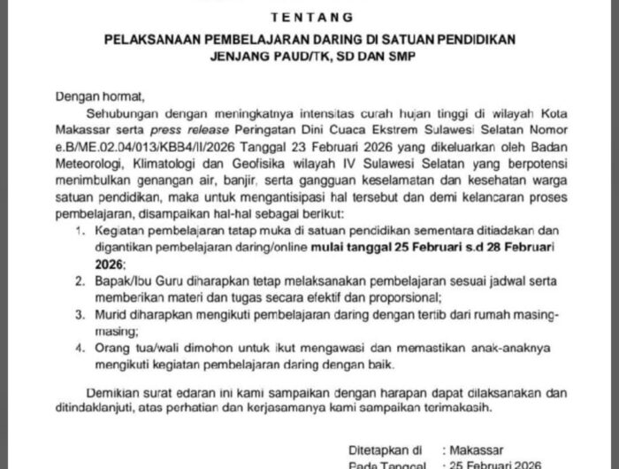 MEDIATA.ID — Pemerintah Kota Makassar, resmi menerbitkan Surat Edaran (SE) Nomor 13 Tahun 2026 tentang […]