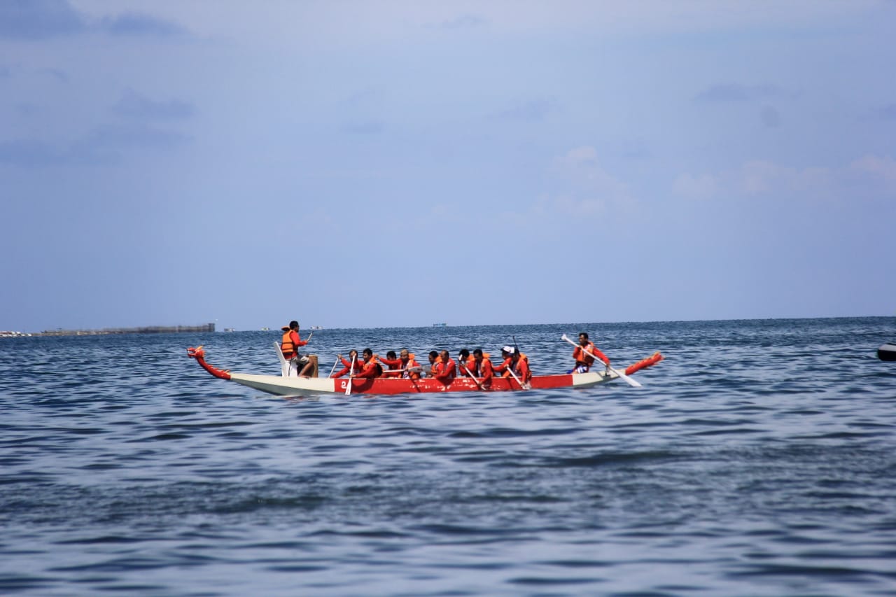 SRLAYAR,MEDIATA.id- Meriahkan Hari Jadi ke-413 Selayar, Dinas Kelautan dan Perikanan Kabupaten Kepulauan Selayar menggelar lomba sampan dayung perahu naga antar Organisasi Perangkat Daerah (OPD), di perairan laut Plaza Marina, Selasa (27/11/2018).