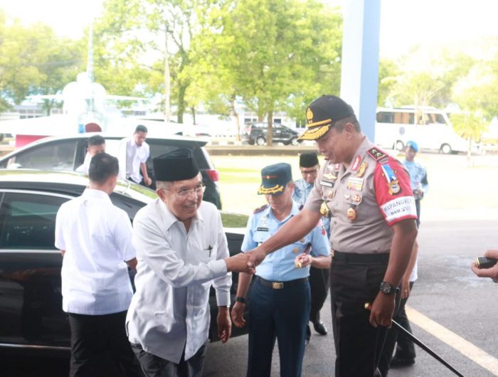 MAKASSAR, MEDIATA. Id – Kapolda Sulsel Irjen Pol Drs Umar Septono mengantar kepulangan Wapres RI H. Muh Jusuf Kalla dan ibu Hj. Mufidah Jusuf Kalla beserta rombongan di Galaktika Lanud Sultan Hasanuddin . Minggu (20/01/2019)sore.