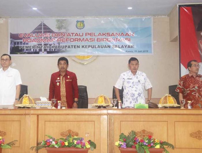 SELAYAR,MEDIATA.id- Asisten Administrasi Setda Kepulauan Selayar Drs. Dahlul Malik, M.H membuka pelaksanaan evaluasi roadmap reformasi birokrasi di Ruang Pola Kantor Bupati, Kamis (11/7/2019).