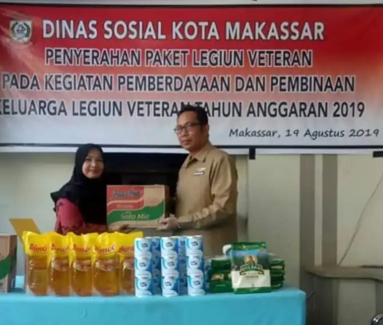 MAKASSAR,MEDIATA.id-Dinas Sosial (Dinsos) Kota Makassar menyerahkan bingkisan penghargaan kepada keluarga legiun veteran, pada kegiatan pemberdayaan dan pembinaan keluarga legiun veteran tahun anggaran.2019 di Kantor Dinas Sosial Kota Makassar, Senin,19-08-2019.