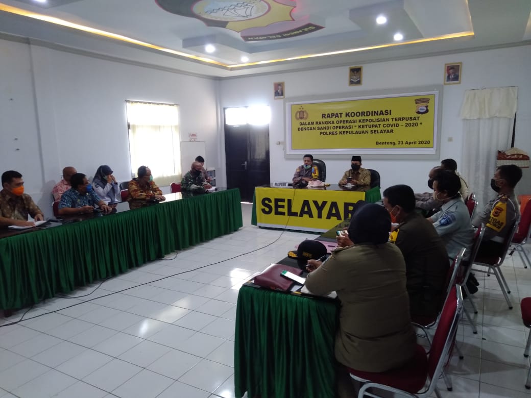 SELAYAR,MEDIATA.id-Bertempat di ruang Vidcon Mapolres Kepulauan Selayar telah dilaksanakan Rapat Koordinasi ( Rakor ) Operasi Ketupat Covid-19, Tanggal (23/4/2020)pukul 14.00 Wita.