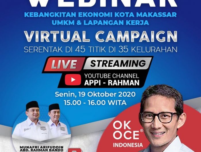 Salah satu model kampanye yang rencananya akan dihadirkan yakni kampanye virtual yang akan disiarkan langsung melalui channel Youtube Appi-Rahman, Senin (19/10/202) sore ini.