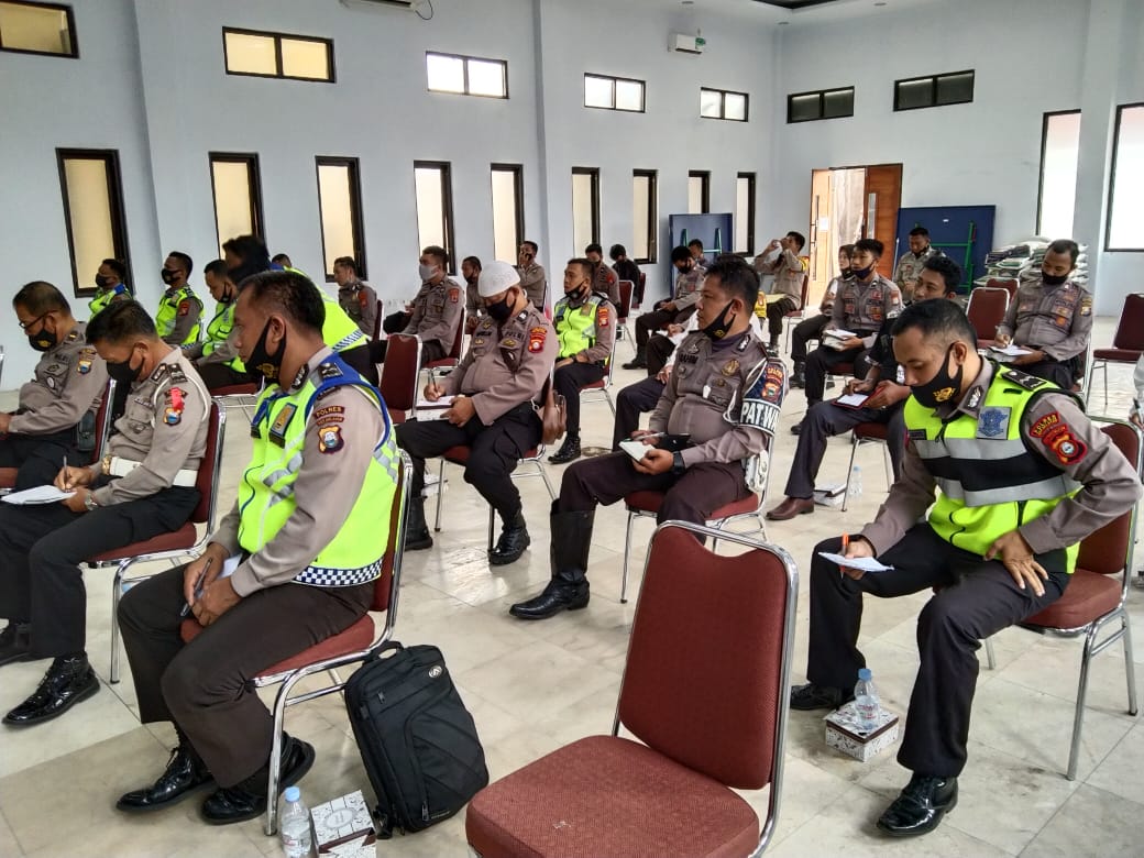 “Khususnya Personil Satlantas agar selalu mengedepankan tindakan persuasif, humanis dan mempedomani protokol kesehatan untuk mencegah wabah Covid – 19,” Ujar Kapolres(Muhsar)