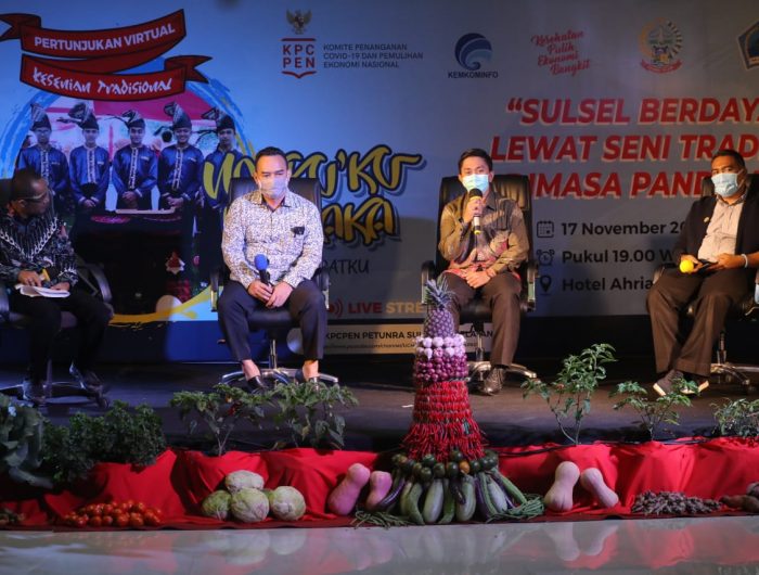 BANTAENG, MEDIATA.ID — Sanggar Seni Kalimbaung Kabupaten Bantaeng tampil memukau pada pertunjukan virtual kesenian tradisional yang diselenggarakan oleh Komite Penanganan Covid-19 dan Pemulihan Ekonomi Nasional (KPCPEN) bekerjasama dengan Kementerian Komunikasi dan Informatika RI dan Pemerintah Kabupatrn Bantaeng.