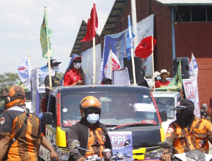 MAKASSAR, MEDIATA.ID — Kreativitas kampanye kembali dipertontonkan tim pemenangan Appi-Rahman. Setelah beberapa pekan lalu menyisir Kecamatan Biringkanaya, lalu berlanjut ke Kecamatan Tamalate, hari ini, Selasa (17/11/2020) ratusan relawan pasangan calon berjargon Makassar Bangkit itu kembali ‘menyerbu’ wilayah utara Kota Makassar.