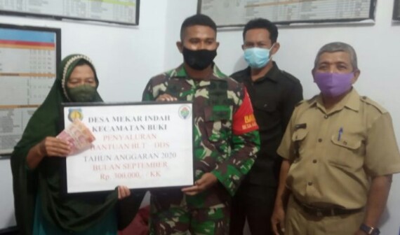Penyaluran BLT disaksikan oleh Camat Buki, Drs Ahmad Yani, Ketua BPD Abdul Rahman, Kepala Desa Nurdin S. Sos. Bhabinkamtibmas Serda Risal, Iptu Mansyur beserta kepala Dusun dan para penerima bantuan tunai.