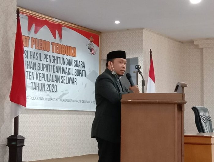SELAYAR,MEDIATA.ID– Komisi Pemilihan Umum (KPU), menggelar agenda Rekapitulasi penghitungan suara Pemilihan Bupati dan Wakil Bupati Kepulauan Selayar, tahun 2020, di ruang pola kantor Bupati, Jln. Jend. A. Yani, Benteng, Rabu (16/12/2020).