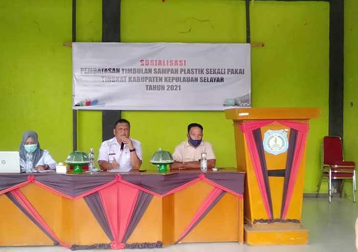 SELAYAR,MEDIATA.ID- Dinas Lingkungan Hidup (DLH) Kabupaten Kepulauan Selayar, melaksanakan Sosialisasi pembatasan timbulan sampah plastik sekali pakai tingkat Kabupaten yang berlangsung di aula Kantor Kelurahan Benteng Selatan, Rabu (24/2/2021).