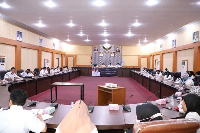 Asisten Bidang Adminstrasi Sekretariat Daerah, Asruddin bersama Kepala Dinas Kominfo SP, H. Subhan membuka Bimtek SP4N Lapor.