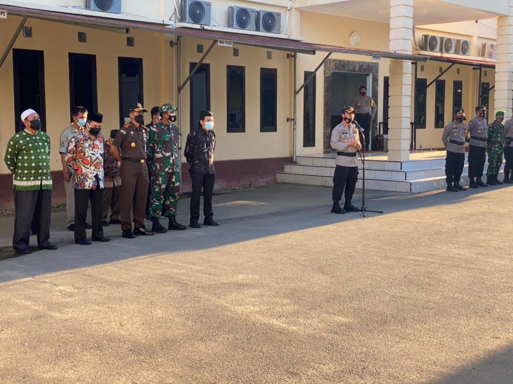 Kapolres juga mengajak kepada semua pihak untuk mendukung pemerintah dalam rangka memutus mata rantai Covid 19 dengan menyampaikan kepada keluarga agar tidak mudik lebaran Idul Fitri 1422 H, kita bisa Silaturrahmi melalui Telpon dan video Call.