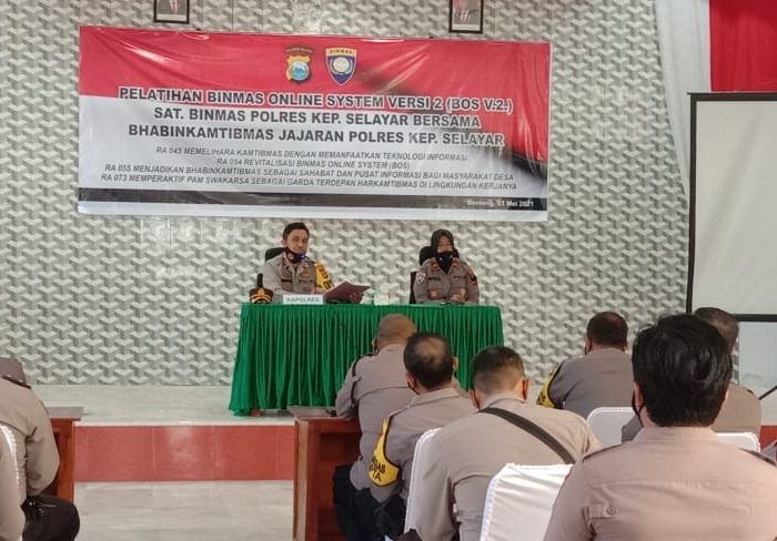 SELAYAR,MEDIATA.ID– Kapolres Kepulauan Selayar AKBP Temmangnganro Machmud,SIK.,MH didampingi Kasat Binmas Kompol Himawati membuka pelatihan Binmas Online Versi 2 (BOS V2) di Aula Serbaguna Polres Kepulaua Selayar, Senin 3 Mei 2021.