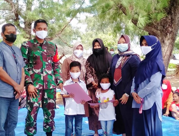 SELAYAR,MEDIATA.ID-Dansatgas TMMD Ke 111 Kodim 1415/Selayar, Letkol Kav. Adi Priatna, hadiri Penamatan binaan Taman Kanak Kanak (TK) Bonelohe, di pantai Tagoiya, Desa Bungaiya, Kecamatan Bontomatene, Kepulauan Selayar, Minggu (20/6/2021).