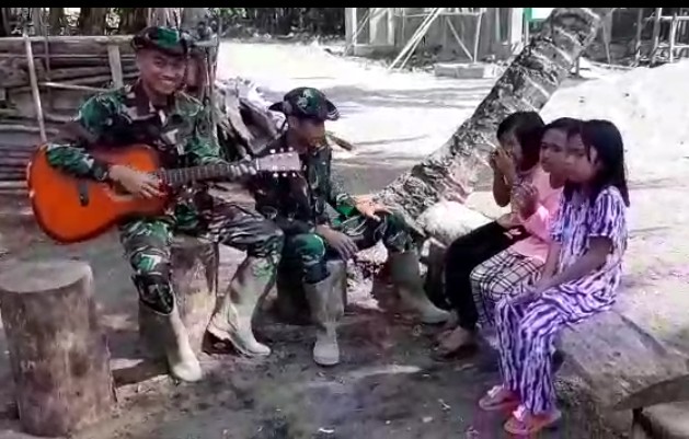 Terpantau media, saat personil satgas lagi istirahat, mereka meluangkan waktunya untuk menghibur warga terutama anak- anak kampung Tola. Personil Satgas dengan santainya bernyanyi sambil memainkan gitar.