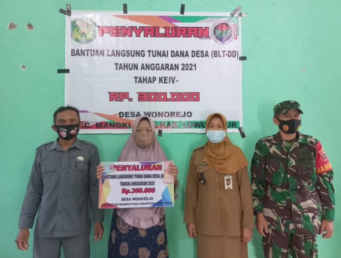 LUTIM,MEDIATA.ID–Pemerintah Desa Wonorejo Kecamatan Mangkutana Kabupaten Luwu Timur kembali salurkan Bantuan Langsung Tunai Dana Desa (BLT-DD) tahap IV kepada Keluarga Penerima Manfaat (KPM), Senin (19/07/2021)