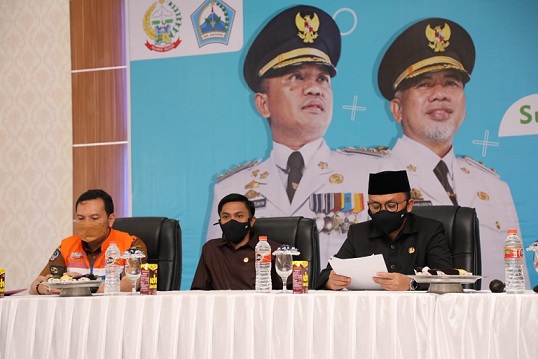 BANTAENG, MEDIATA.ID — Bupati Bantaeng, H. Ilham Azikin bersama para unsur Forum Koordinasi Pimpinan Daerah mengikuti Launching Sulsel Kebut Vaksinasi secara virtual, di Gedung Balai Kartini Bantaeng, Senin (19/7).
