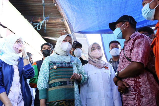 MAKASSAR, MEDIATA.ID — Wakil Walikota Makassar Fatmawati Rusdi meninjau langsung, warga korban kebakaran di Kampung Lepping kelurahan Jongayya Kecamatan Tamalate. Kamis (12/8/2021).