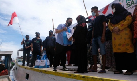 Dalam AKSI SOSIAL, Relawan Kawan Sandi Membagikan Masker, Handzitaiser, Sembako kepada warga, Ini bentuk Kepedulian kawan sandi untuk Rakyat kecil beber Andre Arief Bulu yang hadir membagikan Paket Aksi sosial.
