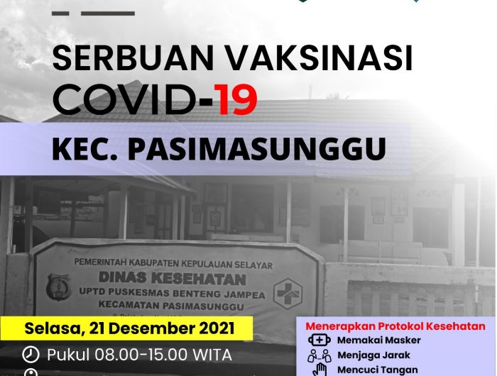 SELAYAR,MEDIATA.ID-Tim Vaksinator Puskesmas Kecamatan Pasimasunggu dibawah koordinator Langsung Kepala Puskesmas H. Abdullah. S. Kep. Ners ,yang terdiri dari dr. Sucipta Merdeka Utama dan Tenaga Medis lainnya berhasil mendapatkan sasaran 168 orang dengan rincian 184 teregistrasi, tunda 16 orang. 135 orang diantaranya dosis pertama dan 33 orang dosis kedua.