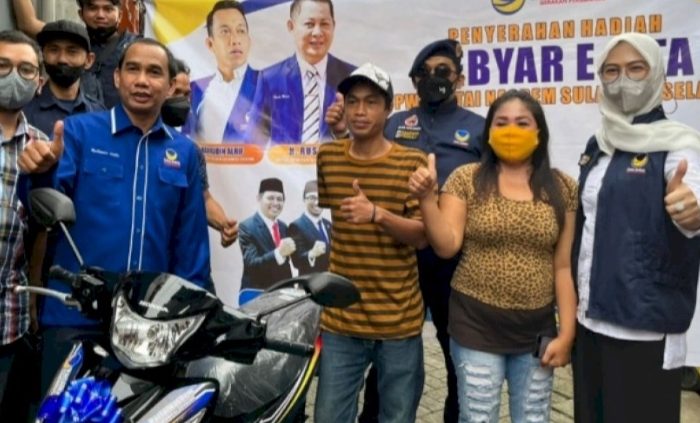Diketahui pada pengundian Gebyar E-KTA Nasdem Sulsel, yang dilaksanakan di Hotel Claro Makassar.