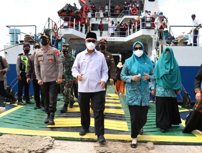 Menggunakan Kapal Motor Penumpang (KMP) Opudi, Bupati Luwu Timur bersama rombongan berangkat dari dermaga sorowako untuk menyeberang danau matano menuju desa yang akan di tuju.