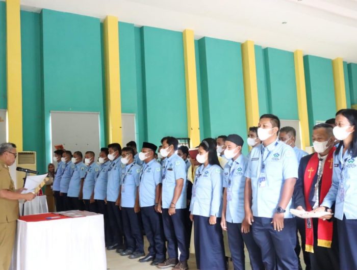 Luwu Timur, mediata.Id -Bupati Luwu Timur, (Lutim), Drs. H. Budiman didampingi Forum Koordinasi Pimpinan Daerah (Forkopimda), Sekretaris Daerah, H. Bahri Suli, melantik dan mengambil sumpah sekaligus pendatanganan pakta integritas serta kontrak kerja, Pejabat Manajemen Perusahaan Umum Daerah Air Minum (Perumdam) Waemami Lutim di Gedung Wanita Simpurusiang, Selasa (10/05/2022).
