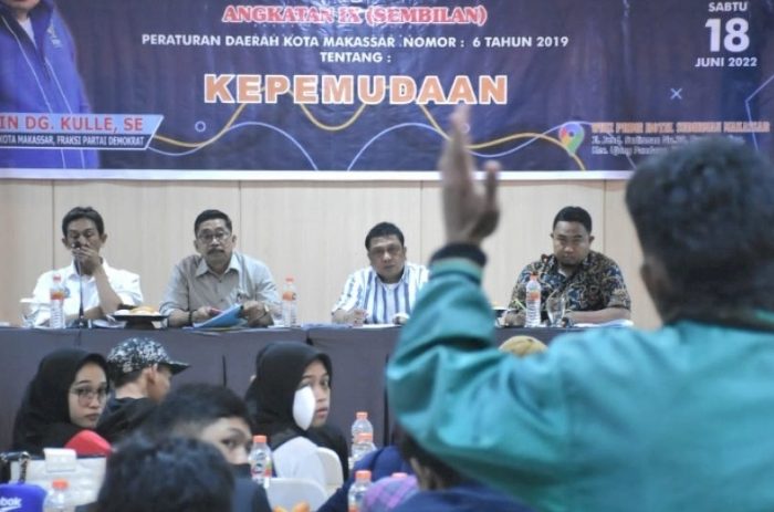 MAKASSAR, MEDIATA.ID – Anggota DPRD Kota Makassar, Arifin Dg Kulle, menggelar Sosialisasi Peraturan Daerah (Perda) Nomor 6 Tahun 2019 tentang Kepemudaan di Hotel Whiz Prime Sudirman, Sabtu (18/6/2022).
