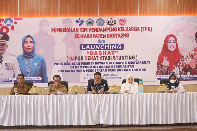BANTAENG, MEDIATA.ID — Sebagai wujud komitmen Pemerintah Kabupaten Bantaeng dalam melayani permasalahan gizi masyarakat Kab. Bantaeng, telah dilaksanakan Pembukaan Pembekalan Tim Pendamping Keluarga (TPK) se-Kabupaten Bantaeng yang dirangkaikan dengan Launching “DASHAT” pada kegiatan Pemberdayaan Kelompok Masyarakat di Kampung KB dalam rangka Percepatan Penurunan Stunting. Kegiatan ini dilangsungkan di Gedung Balai Kartini Kab. Bantaeng, Senin (25/7).