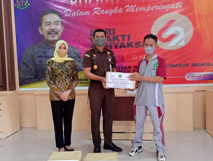 SELAYAR, MEDIATA.ID- Dalam rangka menyambut Hari Bhakti Adhyaksa (HBA) ke 62 dan ulang tahun ke XII Ikatan Adhyaksa Dharmakirini tahun 2022, Kejaksaan Negeri Kepulauan Selayar melaksanakan Bakti Sosial (Baksos) di Ruang Pola Kantor Kejaksaan Kepulauan Selayar, Kamis (14/7/2022) pagi.