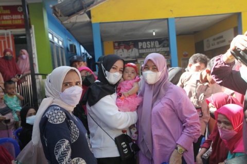 Melalui program gerebek stunting, Wakil Wali Kota Makassar Fatmawati Rusdi bersama stakeholder terkait rutin turun memantau perkembangan angka stunting di Puskesmas.
