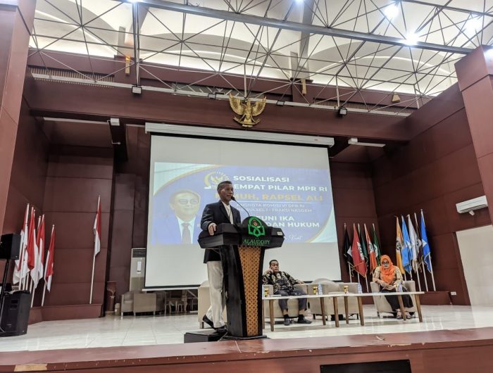 MAKASSAR, MEDIATA.ID- Anggota Komisi VI DPR RI Fraksi Partai NasDem, H. Muh Rapsel Ali menggelar sosialisasi kebangsaan empat pilar MPR RI di Auditorium Kampus II Universitas Islam Negeri (UIN) Alauddin Makassar, Sulawesi Selatan.