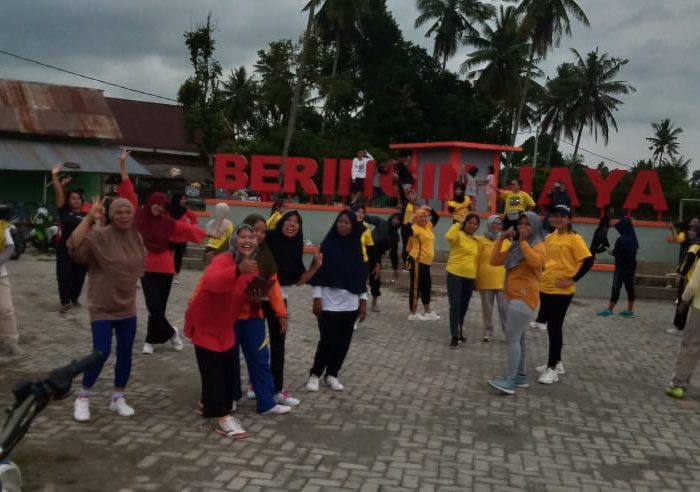 Para ibu-ibu bersama ibu Ketua PKK Desa Beringin Jaya, Siti Asriyah melaksanakan senam yang bertempat di lapangan Desa Beringin Jaya, Kecamatan Tomoni, Kabupaten Luwu Timur, Sabtu (10/09/2022).