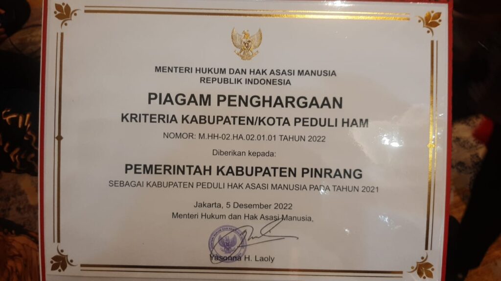Yang terbaru, Bupati Pinrang hadir langsung pada peringatan Hari Hak Asasi Manusia (HAM) dimana Kabupaten Pinrang adalah salah satu Kabupaten yang menerima penghargaan dari Kementerian Hukum dan HAM Republik Indonesia.
