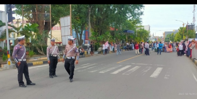Personil gabungan Unit Satlantas Polsek Watang Sawitto bersama Satlantas Polres Pinrang kembali menggelar kegiatan pengamanan jalannya pawai karnaval TK/Paud pada peringatan hut Kabupaten Pinrang ke-63 tahun.