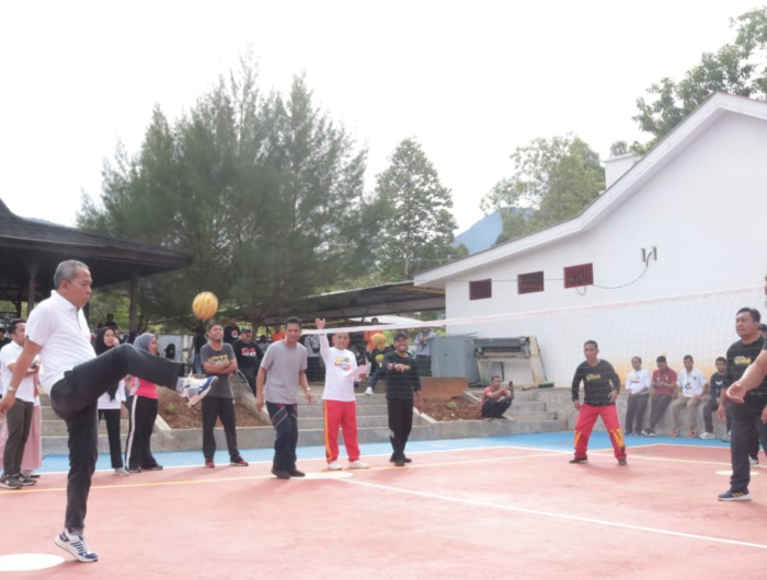 LUWU TIMUR, MEDIATA.ID-Sekretaris Daerah (Sekda), H. Bahri Suli mengapresiasi pengelenggaraan Eksebisi Sepak Takraw Rabu Sehat For Having Fun (EKSTRA Having Fun) yang diadakan oleh Dinas Pariwisata, Pemuda dan Olahraga (Parmudora) Kabupaten Luwu Timur (Lutim) di Lapangan Takraw Disparmudora, Rabu (01/02/2023).