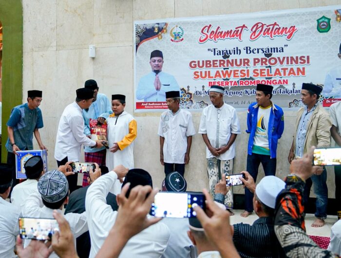 TAKALAR, MEDIATA.ID — Gubernur Sulawesi Selatan, Andi Sudirman Sulaiman melaksanakan Salat Isya berjamaah di Masjid Agung Kabupaten Takalar, Jum’at 14 April 2023.