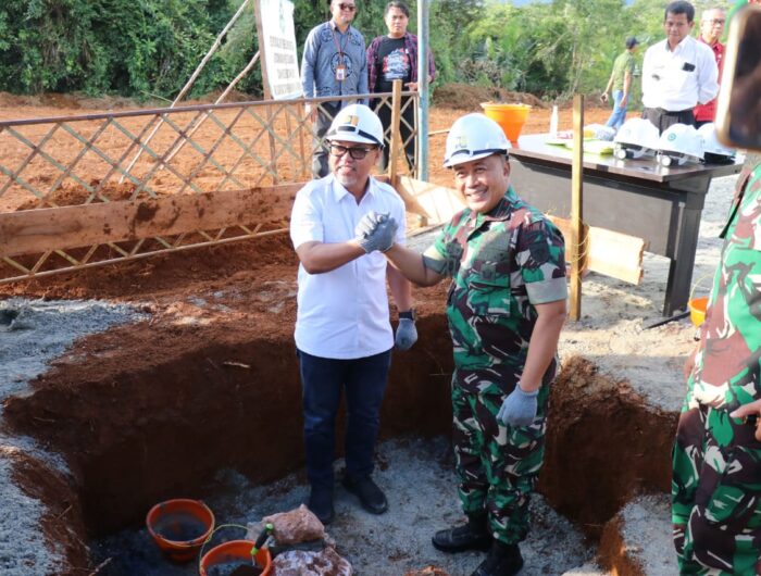Luwu Timur, mediata.id -Bupati Luwu Timur, H. Budiman didampingi Danrem 141/Toddopuli, Brigjen TNI Budi Suharto, melakukan peletakan batu pertama pembangunan Markas Komando Distrik Militer (Makodim) di area jalan lingkar Desa Puncak Indah, Kecamatan Malili, Jum’at (21/07/2023, yang diawali penandatangan Naskah Perjanjian Hibah Daerah (NPHD).