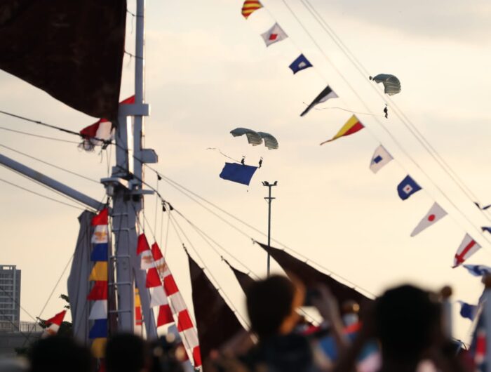 MAKASSAR, MEDIATA.ID — Pembukaan Makassar International Eight Festival and Forum atau Makassar F8 2023 dimeriahkan oleh berbagai atraksi udara dan laut, salah satunya atraksi terjun payung.
