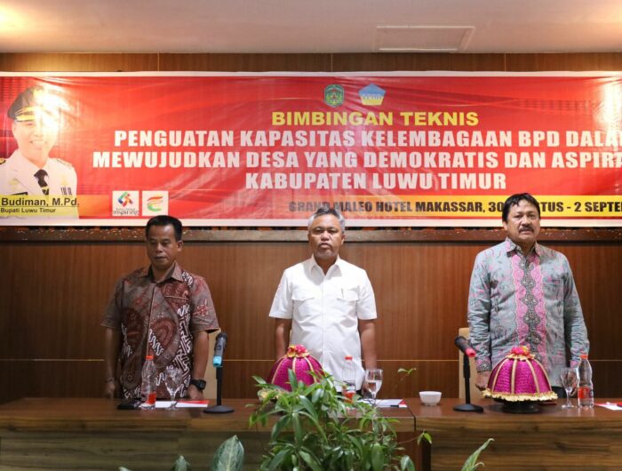 Luwu Timur, mediata.id -Bupati Luwu Timur, H. Budiman, membuka Bimbingan Teknis (Bimtek) Peningkatan Kapasitas Anggota Badan Permusyarawatan Desa (BPD) se-Kabupaten Luwu Timur Tahun 2023, yang di laksanakan di Hotel D’Maleo Makassar, Rabu (30/08/2023).