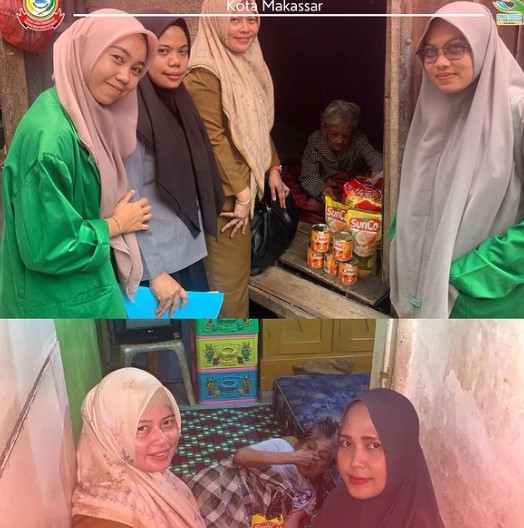 Plt. Kepala Bidang Rehabilitas Sosial, Suhartiny S. SE., M.M. menyerahkan bantuan kepada 2 ( dua ) keluarga dengan penyandang disabilitas berat di Kelurahan Ballaparang, Kecamatan Rappocini.