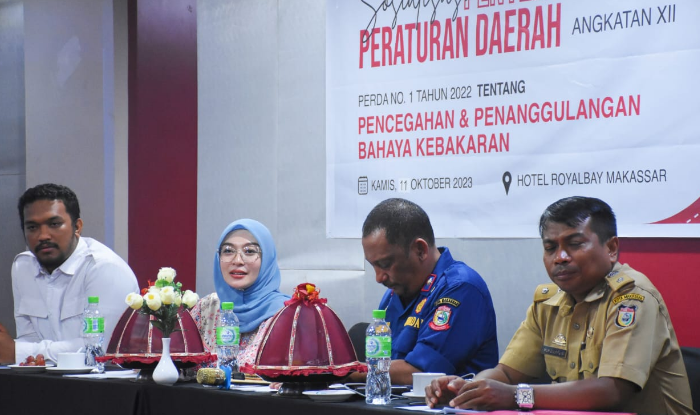 MAKASSAR, MEDIATA.ID– Anggota DPRD Kota Makassar, Budi Hastuti menggelar Sosialisasi Penyebarluasan Peraturan Daerah (Perda) Nomor 1 Tahun 2022 tentang Pencegahan dan Penanggulangan Pemadaman Kebakaran, di Hotel Royal Bay, Jl Sultan Hasanuddin, Rabu (11/10/2023).