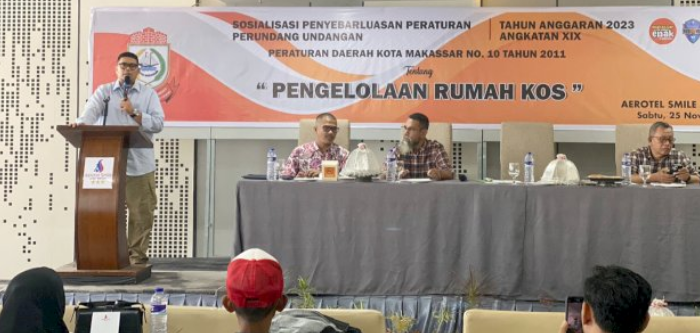 Hal demikian disampaikan Pahlevi saat menggelar Sosialisasi penyebarluasan Perda nomor 10 tahun 2011 tentang Pengelolaan Rumah Kost, di Aerotel Smile Makassar, Sabtu (25/11/2023).