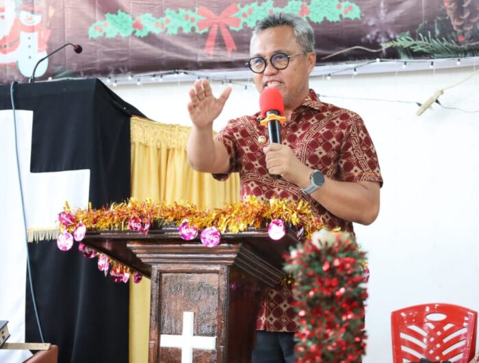Pendeta Yorim Karoma dalam sambutannya mengucapkan terimakasih kepada Bupati Budiman yang sudah berkenan hadir dalam perayaan Natal jemaat Lauwo Baru.