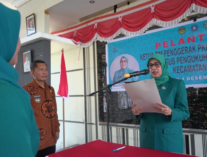 Lutim, mediata.id -Ketua Tim Penggerak PKK Kabupaten Luwu Timur, Hj. Sufriyati Budiman didampingi Ketua I Bidang Pembinaan Karakter Keluarga, Arbiyanti Febthavia A. Leluasa, dan Ketua Dharmawanita Persatuan (DWP) Lutim, Hj. Masrah Bahri Suli. mengukuhkan ketua TP-PKK Kecamatan Kalaena dan Wotu sekaligus pelantikan bunda PAUD dan bunda Literasi kecamatan yang bertempat di Gedung serbaguna Kecamatan Kalaena dan Wotu, Jumat (01/12/2023).