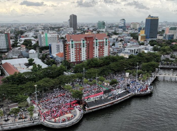 Belasan ribu masyarakat Makassar turut hadir dan meramaikan Anjungan Pantai Losari.