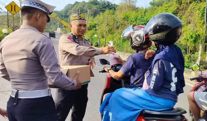 Sat Lantas Polres Selayar Bagi Takjil Ramadhan Untuk Pengendara
