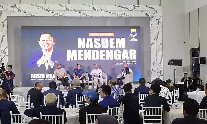 “Kita di NasDem Sulsel memulai gaya baru, yakni NasDem Mendengar. Kenapa ini dilakukan, karena kami semua hanya pekerja lapangan, maka kami butuh saran orang pintar terutama akademisi atau pun pengamat, kami semua butuh wejangan,” ujar RMS di Kantor DPW NasDem Sulsel, Jalan Metro Tanjung Bunga, Makassar, Senin (15/4/2024) malam.