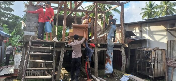 “Sasaran ini selain penyandang disabilitas juga setelah kita survey rumahnya merupakan rumah kayu berukuran kecil dan sudah tua. Ia sehari-hari bekerja sebagai tukang panjat Kelapa. Upah dari panjat kelapa itu digunakan untuk menafkahi Istri dan 4 (empat) orang anaknya.” Ungkap Iptu H. Ahdiansar.