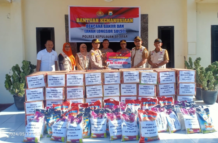 “ Dengan mengucapkan Bismillahirrahmanirrahim, Saya atas nama Polres Kepulauan Selayar menyerahkan bantuan kemanusiaan untuk saudara-saudara kita, para korban bencana banjir dan tanah longsor Sulsel, untuk dikirim ke sasaran, semoga dapat meringankan beban dari musibah ini” kata Kapolres AKBP. Ujang Darmawan HS.