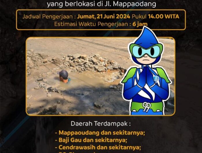 “Selama proses pengerjaan berlangsung, debit air akan berkurang. Mohon maaf atas ketidaknyamanan pelanggan yang terkena dampak. Disarankan agar menampung air sebelum waktu pengerjaan dimulai,” tulis PDAM Makassar dalam postingannya. (*)